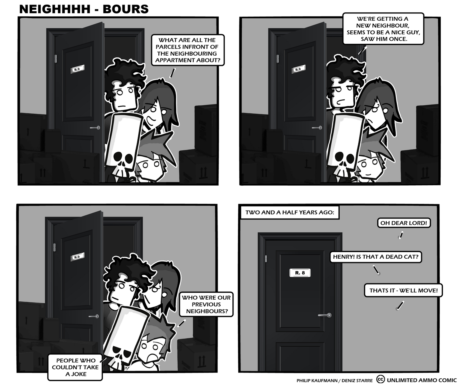 The idea if this comic started basically with the character of Greg. Philip once drew Greg for a competition and I thought hey why don't we make that into a comic? We soon found out that the idea of the death in a webcomic was not really our most original idea ever BUT it did make us write and publish this come and up to this day I think we had a rather steep but fullfilling learningcurve and I hope we both get better at what we're doing. I recently tried to catch the essence of this comics idea more and that's why we've been seeing the evil side of Greg more and more but at least it still has to do with baby kittens so it's fine.